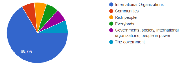 We asked 15 people who they thought could solve the issue of world hunger and the main response was “International Organizations”. You can see this in Figure 2.