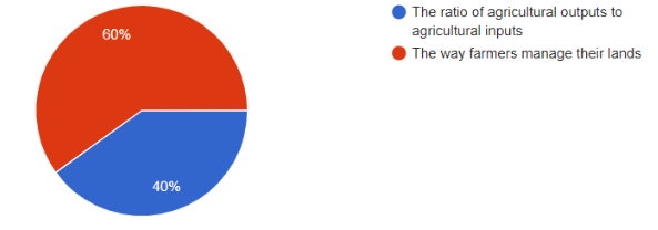 We asked 15 people to choose the right definition of agricultural productivity and the answer was “The way farmers manage their lands” this being incorrect despite thinking this was the best option. You can see this in Figure 4.